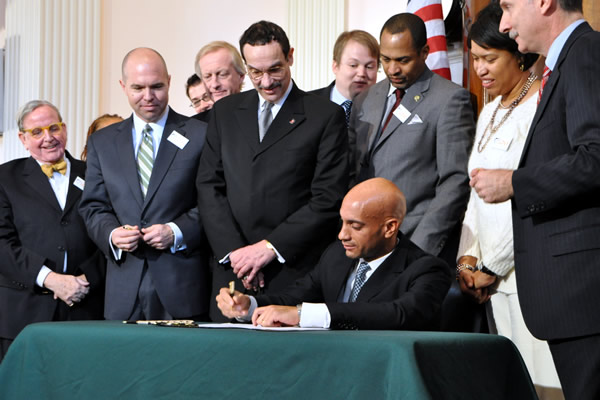 Fenty signed the Religious Freedom & Civil Marriage Equality Amendment Act of 2009 four days after the D.C. Council gave its final approval of the measure, 11-2.