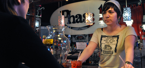 “At the end of the day we’re kind of a dive bar,” she says. “You wanna go out and have a super fancy, I mean try to order a drink with fresh muddled fruit at Phase 1 — it’s not gonna happen. So if you wanna go out and have your fancy drink, if you want a capriana or whatever people drink nowadays, you wanna go to a fancy bar and pay $14 a drink, that’s not us. Here you get a three dollar PBR pounder.”