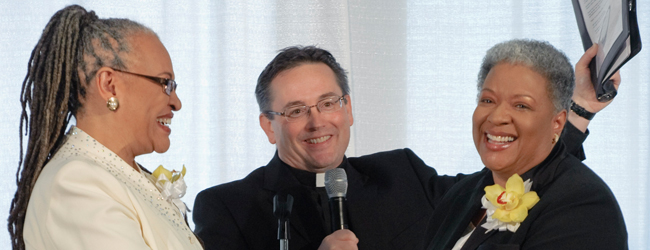 Revs. Darlene Garner and Candy Holmes were married at the Human Rights Campaign headquarters on March 9. (Photo by Joe Tresh)
