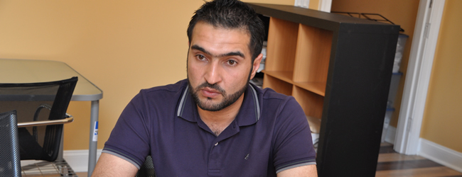 Firas Abdulmajeed, 33, a gay Iraqi refugee, has been in the U.S. for a month. A computer science expert, Abdulmajeed lost a leg to the Shiites while working as a translator for the U.S. Army in Baghdad. He’s now trying to find work in the Washington area. (Washington Blade photo by Michael Key)