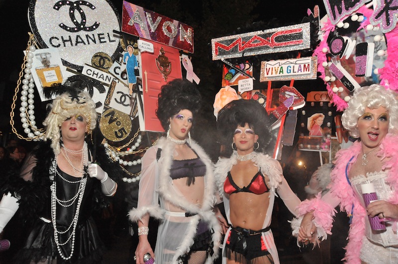 These days, the 9 p.m. race, which Perruzza says begins “on the dot,” is, with its typical blur of gold lame and feather boas, guaranteed to elicit plenty of that drag fun charm. However regular attendees know that the real fun begins at 7:30 p.m. when contestants parade up and down the length of the several-block course to show off their finery. Those wanting a front-row seat should stake out a spot as early as 6 p.m. at one of the on-course cafes.