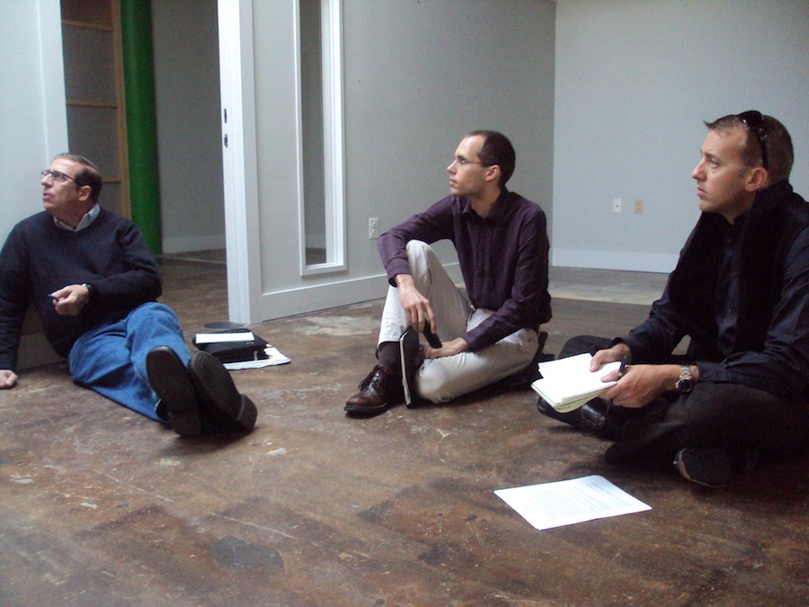 Displaced Blade staff planning an early issue of DC Agenda at temporary office space above Results on U Street last December. From left are Lou Chibbaro, former news editor Joshua Lynsen and Kevin Naff. (Blade file photo)