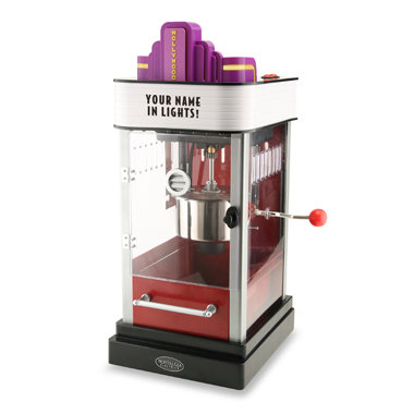 Nostalgia Electrics has brought a little piece of the movie theater to home with its Hollywood Kettle Popcorn Maker ($99.99) which makes eight popped cups of popcorn and features a light-up marquee. Add your name or a fun message with 150 vinyl letters included. Available at bedbathandbeyond.com.