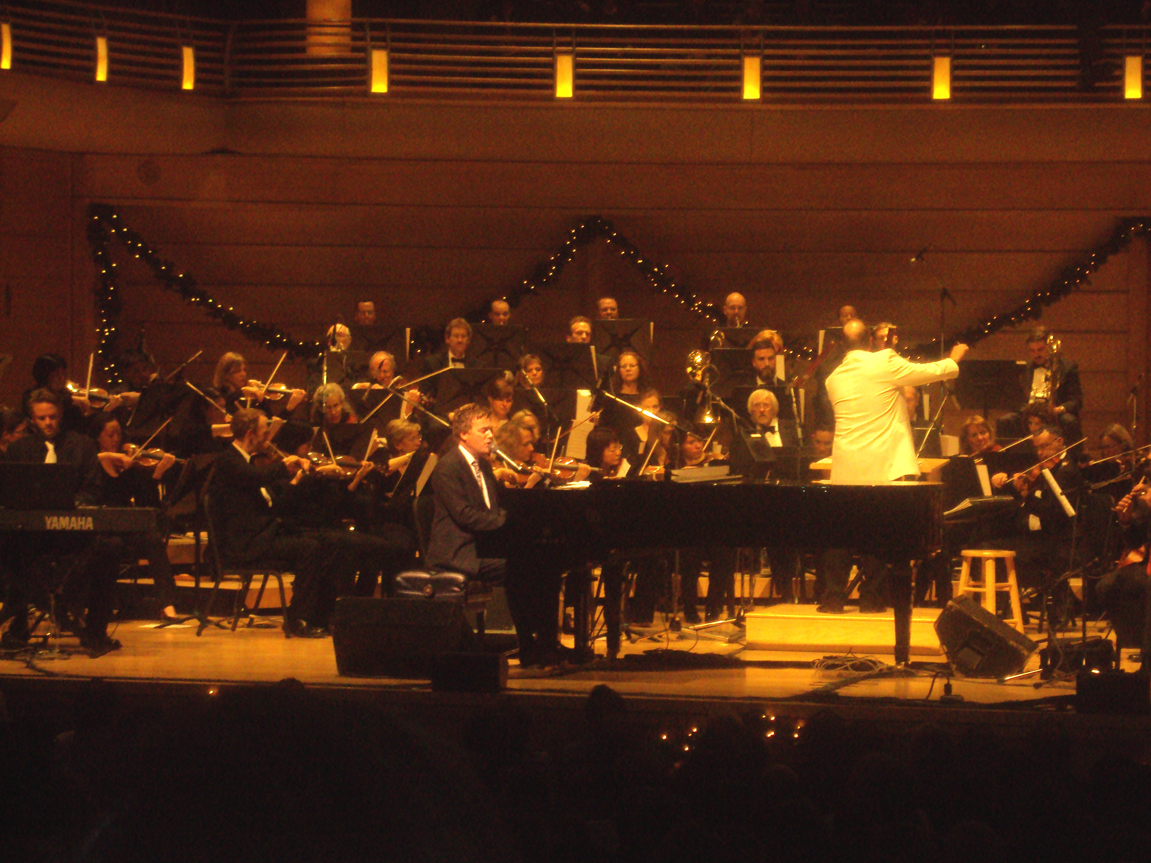 The evening’s pacing and eclecticism were great. Smith threw in a few cuts from his new studio album “Wonder” (a worthy addition to his canon and light years better than mostly dud records he’s made such as “This is Your Time” and “Healing Rain’), a few hits, a few sing-alongs and several instrumental numbers. His latest Christmas album, 2007’s “It’s a Wonderful Christmas” was about half-and-half vocals versus instrumental tracks and several of the latter gave the National Philharmonic, under the direction of composer/arranger David Hamilton, wonderful opportunities for expression.