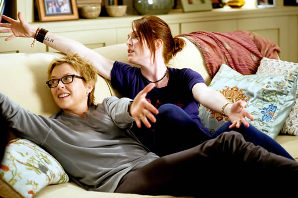 The Kids Are All Right,' a family dramedy with Annette Bening (left) and Julianne Moore playing lesbian parents, is up for three Golden Globe awards and was one of the high points in this year's LGBT-themed films. (Still courtesy of Mandalay Vision)