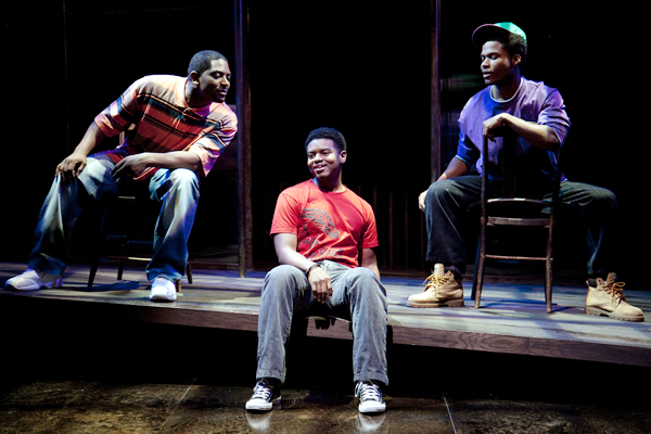 From left, Lance Coadie Williams, J. Mal McCree and Nickolas Vaughan in 'Marcus; or the Secret of Sweet' at Studio Theatre. (Photo by Scott Suchman; courtesy of Studio)