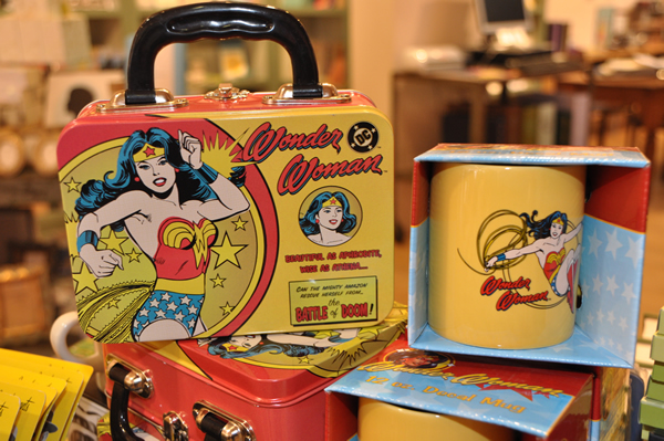They say she’s “beautiful as Aphrodite” and could make a perfect gift for your camp-loving gay boyfriend. Available here on a vintage-looking mini lunchbox ($12.50) or mug ($10.50) at Paper Source is the Amazon Princess herself.