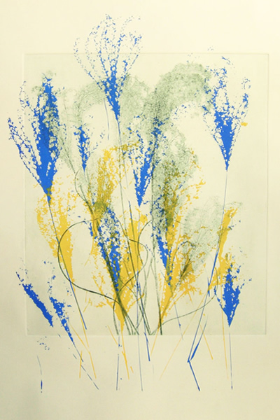 'Blue, Yellow and Green Grasses' is part of an exhibit called 'Grasses' by artist Mary Ott that will be on display starting Wednesday and throughout April at Touchstone Gallery in Washington. Receptions with the artist are planned for April 1 and 10. (Image courtesy of Touchstone Gallery)