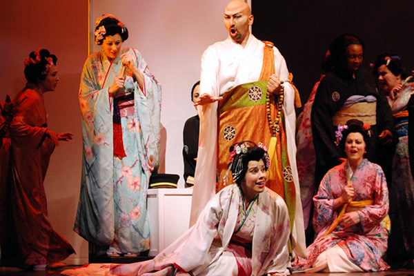 Ashraf Sewailam as The Bonze and Sandra Lopez as Cio-Cio San in Virginia Opera's production of "Madama Butterfly" being performed Friday and Sunday at George Mason University Center for the Arts Concert Hall in Fairfax. (Photo by Anne M. Peterson)