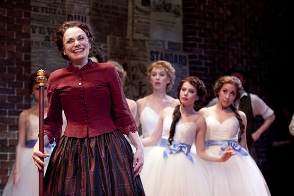 After intermission, things improve significantly: There’s a rousing can-can number (quite the scandal in the 1860s) and a budding same-sex romance between the company’s veteran actor played by the excellent Erick Devine, who is gay, and the ballet troupe’s talented Hungarian accompanist (Brian Sutherland); as well as memorable music including “Stay,” William’s balladic plea to his production’s leading lady, Millicent Cavendish (Rebecca Watson), an aging ingénue with whom he’s falling in love. Overall, the pacing quickens considerably and the jokes are less stale.