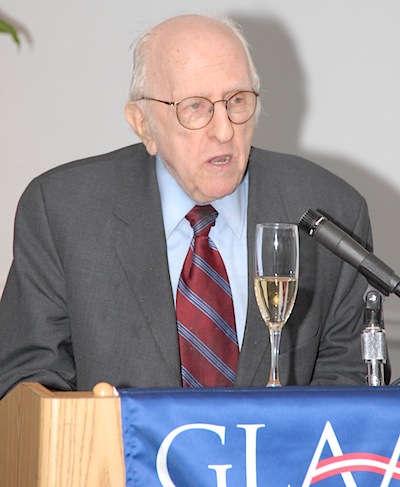 Frank Kameny giving his traditional GLAA toast at the group's 2007 awards. (Blade file photo by Henry Linser)