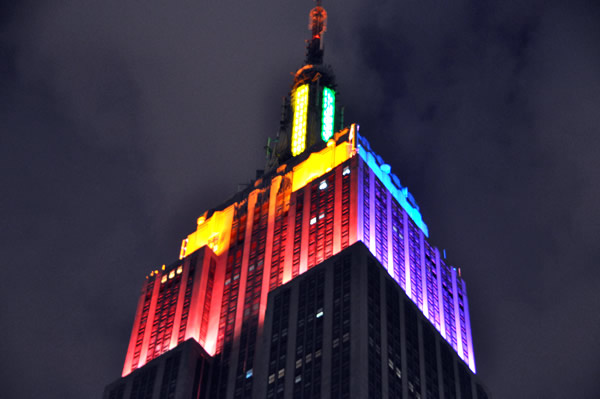 Empire State Building lit up in rainbow colors in time to see marriage equality passed. (Washington Blade photo by Michael Key)