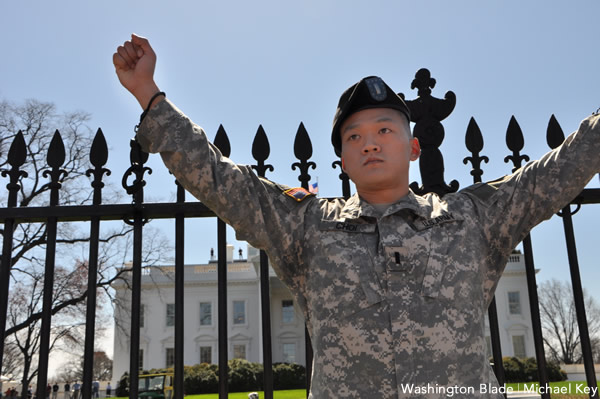 Former Army Lt. Dan Choi and 12 others were arrested last year after protesting ‘Don’t Ask, Don’t Tell’ at the White House. (Blade file photo by Michael Key)