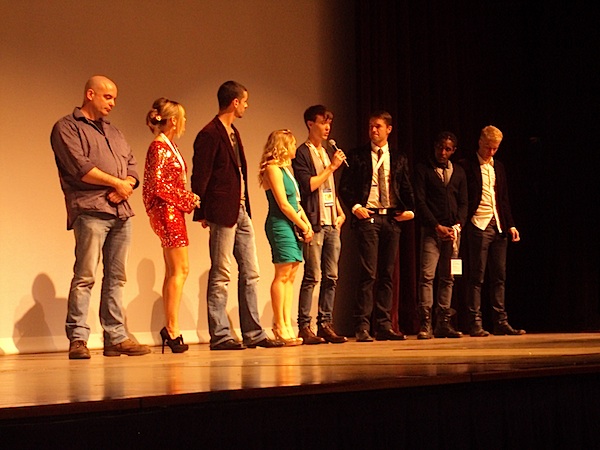 The cast of 'Into the Lion's Den' at the Lisner for the movie's premiere Sunday night. (Blade photo by Joey DiGuglielmo)
