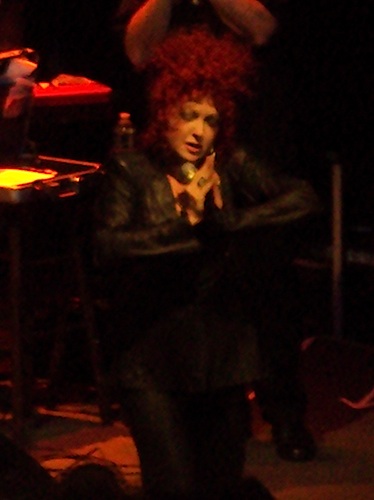 The ballads — “All Through the Night,” “Time After Time” and encore “True Colors” — were less altered but all sung with conviction and bravado. “Colors” especially resonated with Musselwhite providing surprisingly effective harmonica for its familiar opening strains. When introducing the song, Lauper — sporting a Raggedy Ann-red wig clipped up in a quasi mohawk style — reiterated her gay support and talked about her New York center for homeless LGBT youth. Fans willing to donate $200 to her True Colors Foundation got to meet Lauper backstage for a quick meet and greet. Photos and autographs were allowed but it was a cattle call with her handlers moving people through in rapid succession just before she went on. I didn’t go but could see the proceedings in the 9:30 Club’s stage left balcony area.