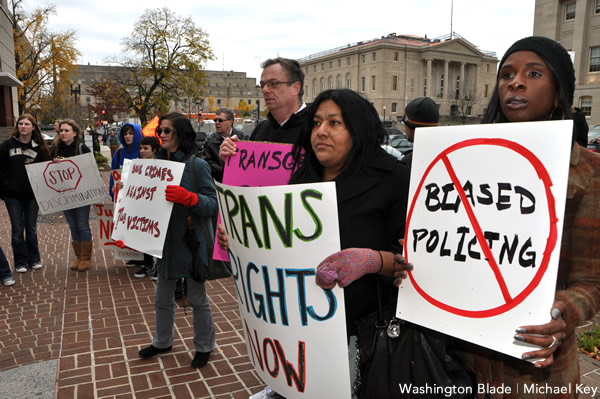 Participants in the two protests, which organizers called a Transgender Day of Action, presented a list of demands to District Police Chief Cathy Lanier and U.S. Attorney for the District of Columbia Ronald Mechan calling for immediate steps to address the problem.