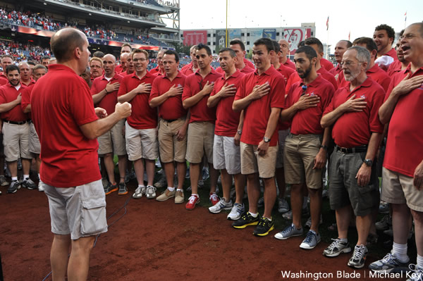 - For the seventh straight year, members of the Gay Men’s Chorus of Washington sing National Anthem before ‘Night Out.’ (Washington Blade photo by Michael Key)