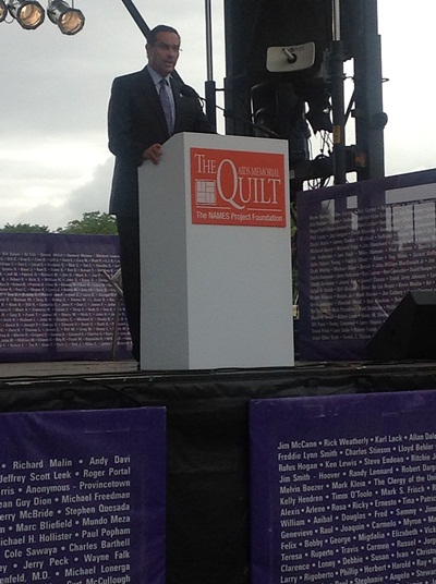 The mayor spoke at the AIDS Memorial Quilt’s opening ceremony on Sunday