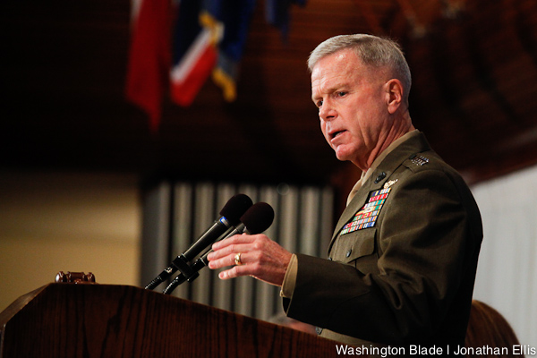 “It was gratifying to hear General Amos once again affirm his view that the repeal of ‘Don’t Ask, Don’t Tell’ has proceeded smoothly,” he told the Blade. “His comments certainly reflect what is happening across the services. Now it’s time for us to take the next step and ensure that all service members and their families are treated equally.”