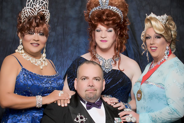 Along with Emperor Fidel I, seated, are (from left to right) Empress XXI of Corpus Christi, BeBe Evanson-Hughes; Empress XXVI of New York, Witti Repartee; and Absolute Empress XLVI of San Francisco, Saybeline Fernandez. The Imperial Court has a charity coronation event Saturday at Washington Mariott. (Photo courtesy Imperial Court)