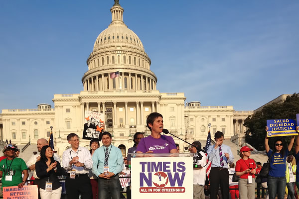 Rea Carey of the National Gay and Lesbian Task Force speaks during a rally for immigration reform at the U.S. Capitol on Wednesday. (Photo by Kathy Plate)