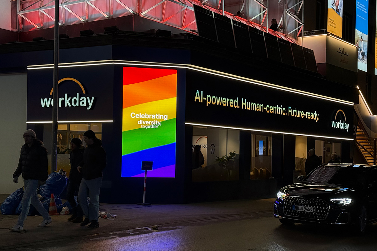 Amazon, Axios, Bloomberg, Circle, Cisco, Cloudflare, Edelman Trust House, Hub Culture, Salesforce, SAP, Snowflake, and Workday participated in the “Pride on the Promenade” that GLAAD, Open for Business, and the Partnership for Global LGBTIQ+ Equality organized. It is the fourth year the organizations have organized the initiative during the World Economic Forum.
