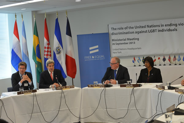 Members of the LGBT Core Group at U.N. that includes the European Union High Representative for Foreign Affairs and Security Policy Catherine Ashton and ministers from Argentina, Brazil, Croatia, El Salvador, France, Israel, Japan, the Netherlands, New Zealand and Norway declared their “strong and determined commitment to eliminating violence and discrimination against individuals based on their sexual orientation and gender identity.”