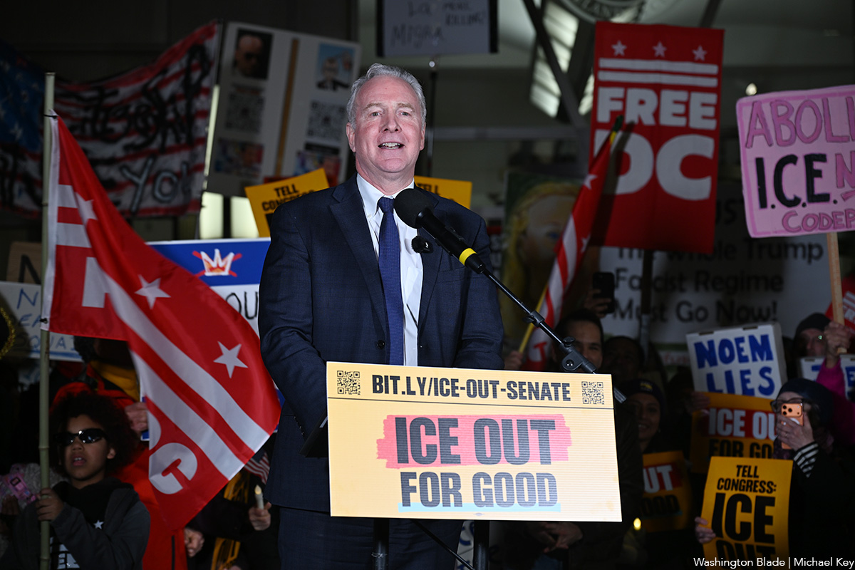 U.S. Sen. Chris Van Hollen (D-Md.) is among those who spoke at an “ICE Out for Good” protest that took place outside U.S. Customs and Border Protection’s headquarters in D.C. on Tuesday.