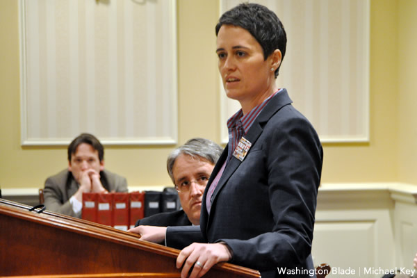 State Del. Heather Mizeur (D-Montgomery County) on Tuesday testified in support of a transgender rights bill. (Washington Blade photo by Michael Key)