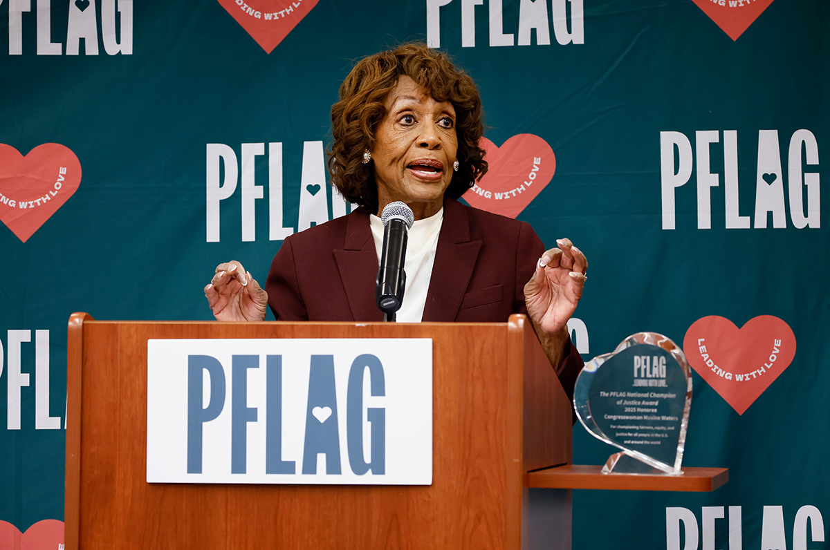 PFLAG honored U.S. Rep. Maxine Waters (D-Calif.) with the “2025 PFLAG National Champion of Justice” award during their annual “Love Takes Justice” event in Washington.