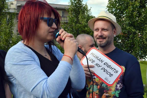 Slovak LGBT rights advocates on May 28 protested an amendment to their country’s constitution that bans same-sex marriage. (Photo by Hana Fabry)
