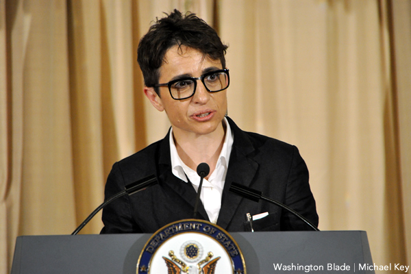 Kerry also applauded Gessen, who fled Russia last December with her wife and their three children because of the Kremlin’s ongoing LGBT rights crackdown, for “her own special perseverance and advocacy.”