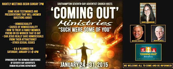 LGBT rights advocates in the British territory this week criticized the ‘Coming Out’ Ministries events and the Southampton Seventh-Day Adventist Church for hosting them.