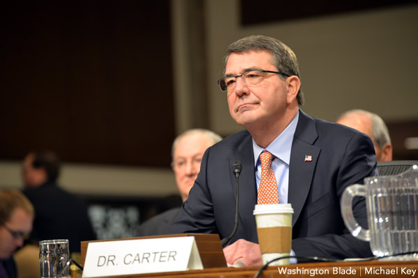 Defense Secretary Ash Carter during an appearance in Afghanistan on Feb. 22, 2015, discussed the idea of allowing transgender people to serve openly in the military. (Washington Blade photo by Michael Key)
