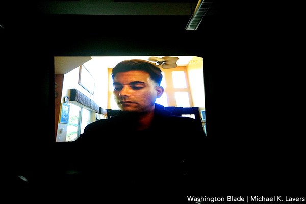 Manuel Vázquez Seijido of the Cuban National Center for Sexual Education on April 10, 2015, speaks to participants of an LGBT symposium at Rutgers University School of Law in Newark, N.J. The Cuban LGBT rights advocate spoke to them via Skype from Miami because he was unable to travel to New Jersey. (Washington Blade photo by Michael K. Lavers)
