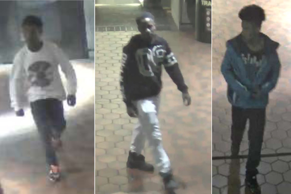 The Washington Metropolitan Area Transportation Authority has released images of three suspects in the April 11 attack of a D.C. man in the Congress Heights Metro station. (Photo courtesy of WMATA)