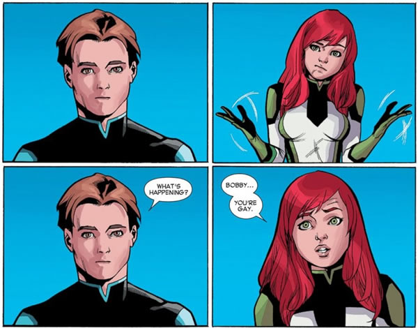 LOS ANGELES — The new issue of “All-New X-Men No. 40” includes a disclosure that Bobby Drake, aka Iceman, is gay.