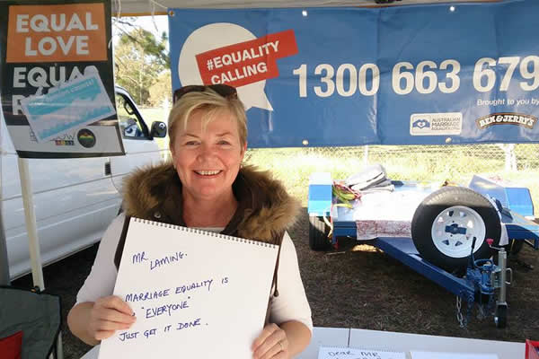 Supporters of marriage rights for same-sex couples in Australia continue to lobby undecided lawmakers on the issue. (Photo courtesy of Australian Marriage Equality)