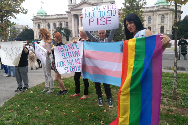 Transgender rights advocates take part in a Pride celebration in Belgrade, Serbia, earlier this year. (Photo courtesy of Sarajevo Open Center)