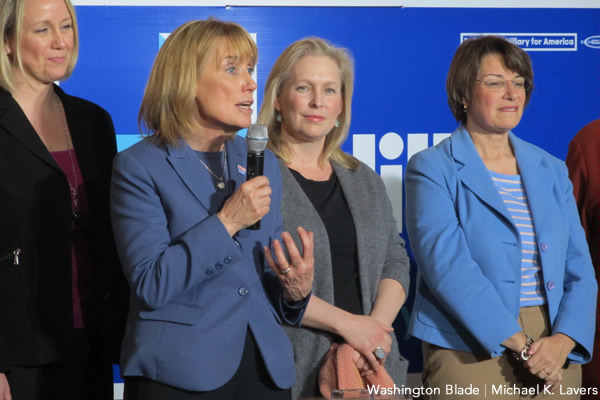 New Hampshire Gov. Maggie Hassan speaks at a campaign event for former Secretary of State Hillary Clinton in Manchester, N.H., on Feb. 5, 2016. (Washington Blade photo by Michael K. Lavers)