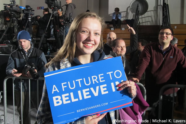 She told the Blade before Sanders spoke to his jubilant supporters that his support of LGBT rights is one of the main reasons why she voted for him.