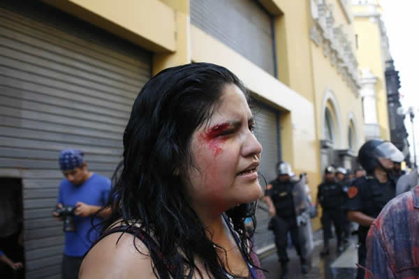 “We were assaulted by the police on Feb. 13 and like every year,” said Chola Contravisual, referring to the annual protest that takes place on the eve of Valentine’s Day. “Approximately 25 LGBTQ people were gathered in Lima’s Plaza de Armas and only some couples expressed their live with kisses and hugs.”