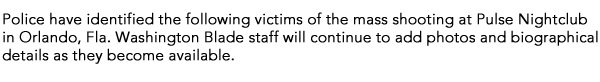 - Anthony Luis Laureano Disla, a 25-year-old dancer/choreographer with friends at Pulse (they’re in stable condition) who’d been in Orlando three years, the Orlando Sentinel reports.