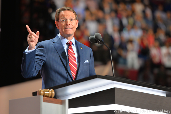 Family Research Council President Tony Perkins speaks at last month’s Republican National Convention. The head of the anti-LGBT group said he and his family used a canoe to evacuate their flooded Louisiana home on Aug. 13, 2016. (Washington Blade photo by Michael Key)