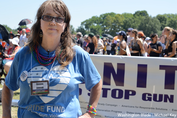 Christine Leinonen attends the “Disarm Hate” rally at Potomac Park on Aug. 13, 2016. She appears in a campaign ad that Florida Congressman Patrick Murphy released on Oct. 17, 2016. (Washington Blade photo by Michael Key)