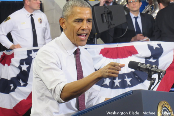 President Barack Obama stumps for Hillary Clinton at Fayetteville State University in Fayetteville, N.C., on Nov. 4, 2016. (Washington Blade photo by Michael K. Lavers)