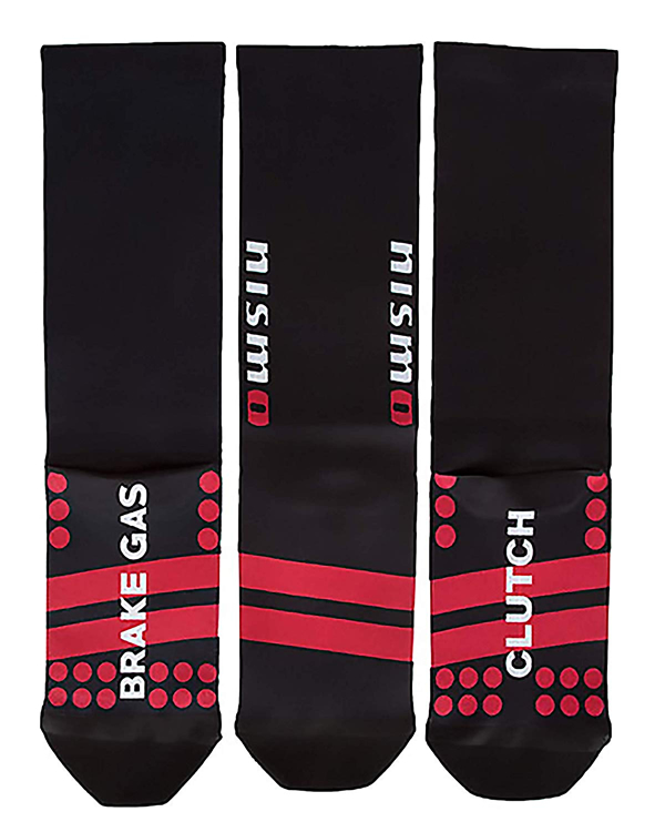 To keep toes toasty, Nissan offers 15-inch black socks ($14) emblazoned with the logo from its Nismo motorsports brand. The Nismo logo is on the top of the sock, with “Brake Gas” written on the bottom of one sock and “Clutch” on the bottom of the other.