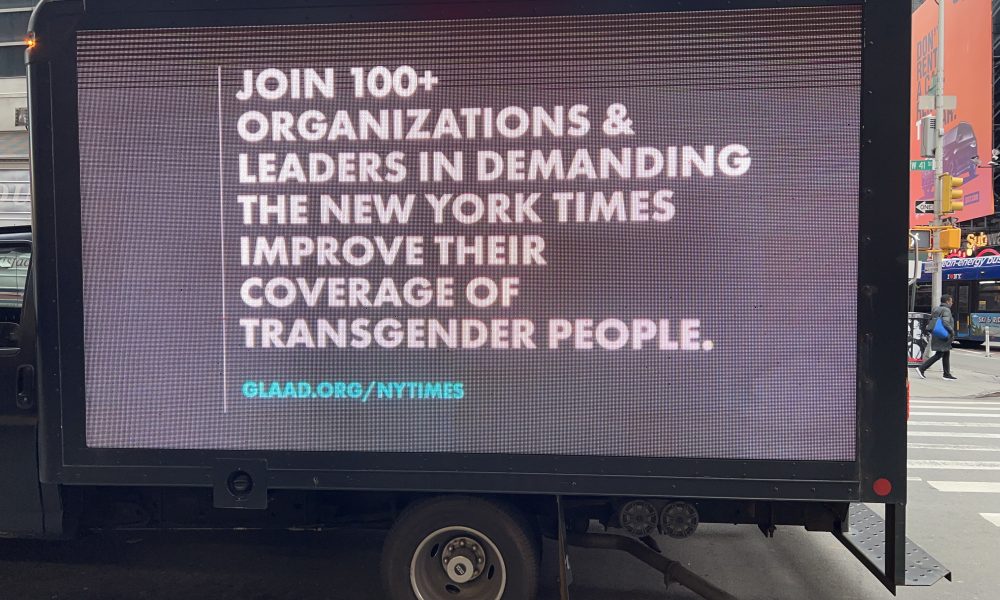 GLAAD billboard circled newspaper’s Manhattan headquarters on Wednesday morning