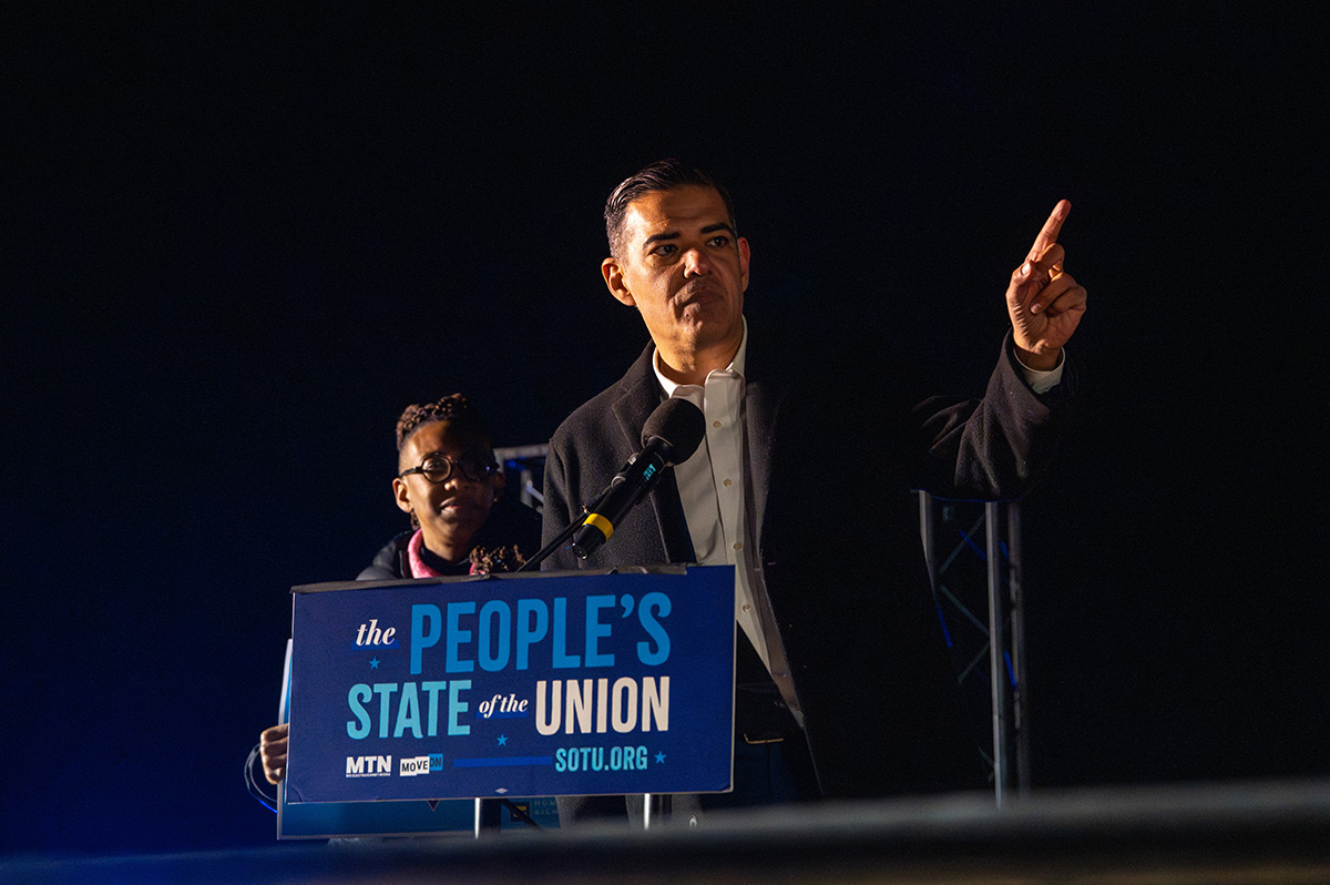 “People are vanishing into thin air. Quiet mornings are punctuated by jarring violence. Students are assaulted by ICE agents sitting outside the high school, hard working residents are torn from their vehicles in front of their children. Families, hopelessly search for signs of their loved ones who have stopped answering their phones, stop replying to text… This is un-American, it is illegal, it is unconstitutional, and the people are going to rise up and fight for Gladys Vega and all of those poor people who today need to know that the people’s State of the Union is the beginning of a long fight that is going to result in the end of Republican control of the House of Representatives and the Senate in the United States of America in 2026.”